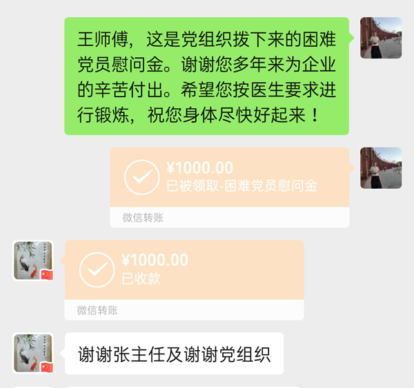 春节将至,公司党委十分挂念因家人或本人生病治疗导致生活困难的党员、老党员,多措并举、多渠道筹集慰问资金,多种方式为他们送去组织的温暖和新春的祝福。